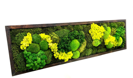 Cuadros ignífugos de grandes dimensiones adaptables a la medida que necesites. Diseño realizado con musgo reno, musgo bola y musgo forestal.